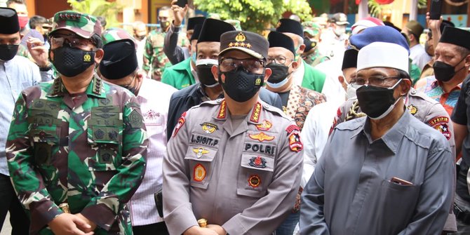 Merdeka.com – Kapolri Jenderal Listyo Sigit Prabowo melakukan peninjauan vaksinasi massal di Gedung Serba Guna Lanud Adi Sujipto, Yogyakarta. Kunjungan ini dilakukan bersama Panglima TNI Marsekal Hadi Tjahjanto, Menteri Kesehatan Budi Gunadi Sadikin dan Kepala BNPB Letjen Ganip Warsito.